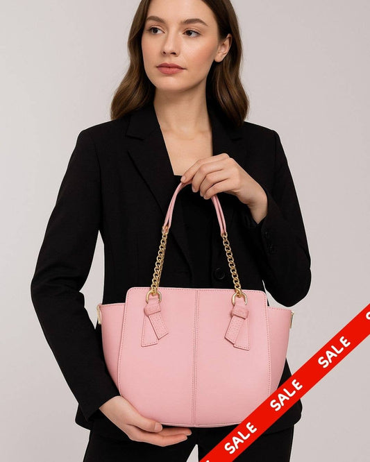 Rose Pink Leather Crossbody Bag Patterned Strap