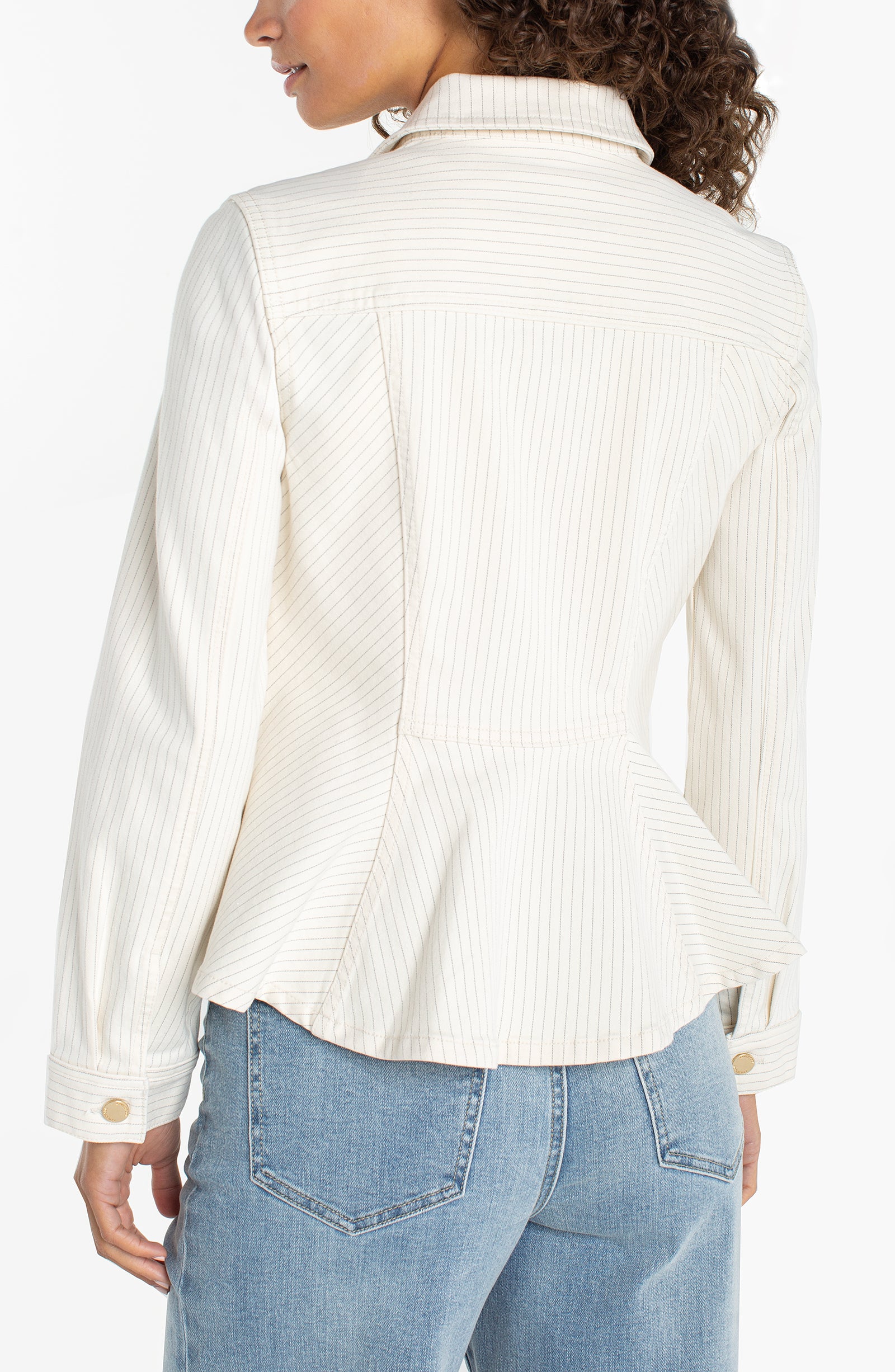 Tailored silhouette meets timeless style with this structured trucker jacket. The fitted bodice and flared hem create a flattering, feminine shape that transitions seamlessly from casual weekends to polished layering. Crafted with quality construction, this versatile piece pairs effortlessly with dresses, jeans, or trousers. A wardrobe essential that elevates any outfit with understated sophistication and enduring appeal.