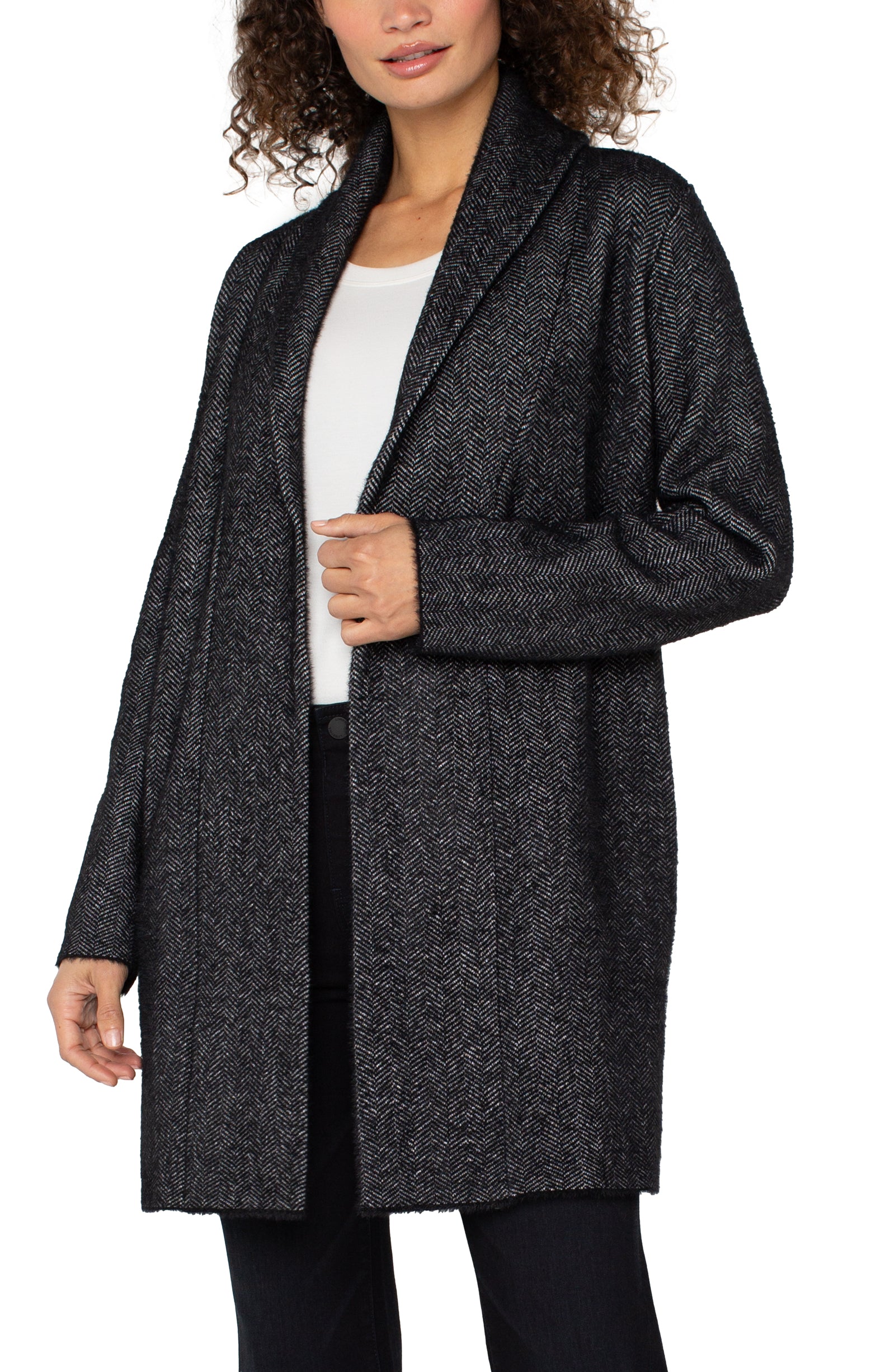 Liverpool Long Sleeve Open Knit Shawl Sweater Coat (Charcoal Chevron)