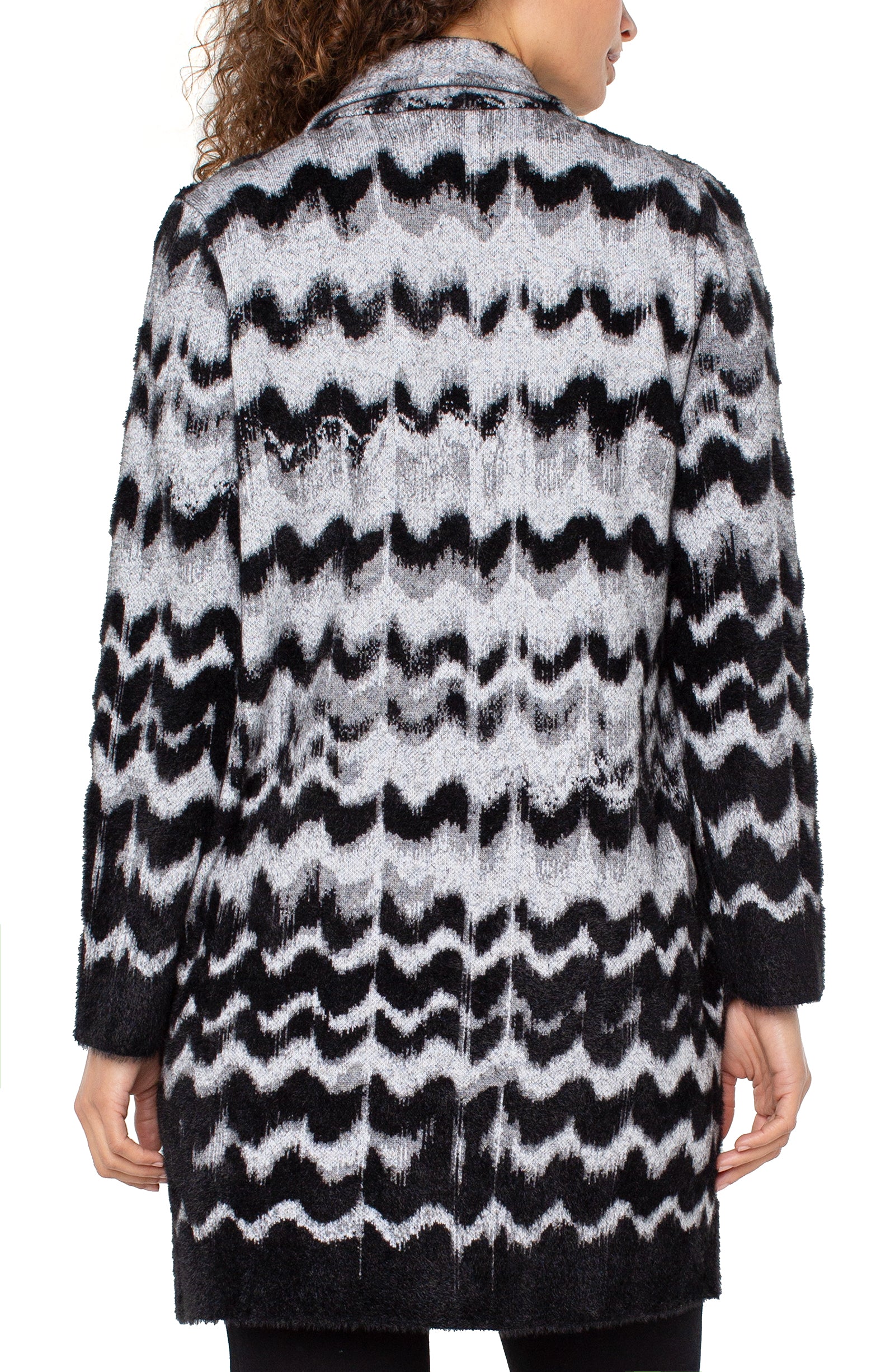 Liverpool Open Front Coatigan Sweater (black grey wavy stripe)