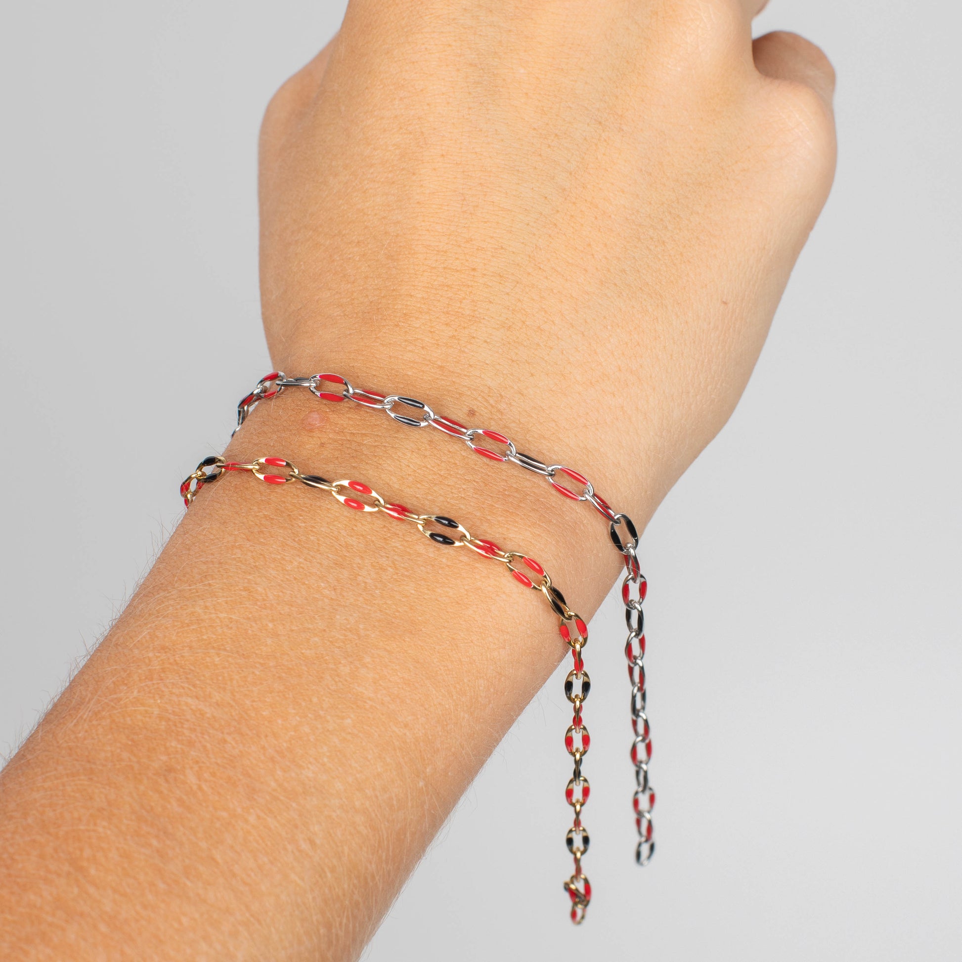 Options for each bracelet are different; options are stainless, gold stainless, rose gold stainless and black stainless.