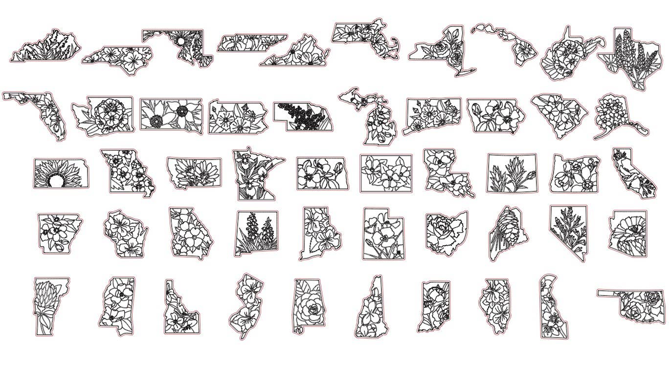 State Flower Keychains | Wood Engraved State Flower